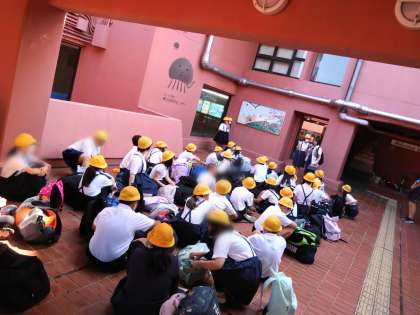 バスで青少年海洋センターに向かった5年生一行は、9時過ぎに無事、目的地に到着しました。