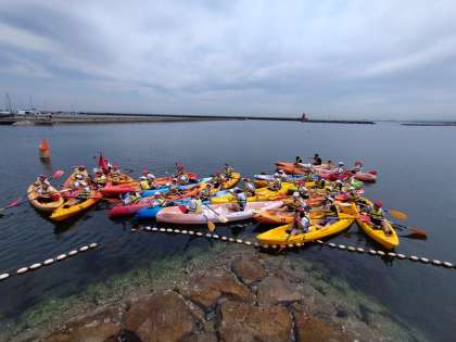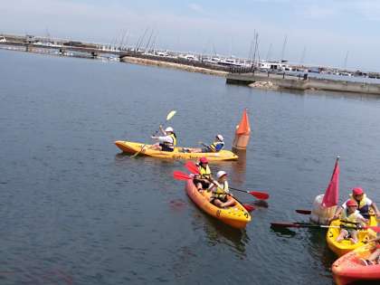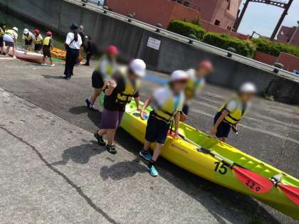 6/13 5年野外活動(二日目 その2) 公開日 2024/06/13 更新日 2024/06/13 お知らせ 本日のメインの活動は、「カヌー体験」です。二人一組で、両側に水掻きがついているパドルを使って漕ぎます。 みんな真剣な表情で、二人で力を合わせて一生懸命に漕いでいました。 楽しかった野外活動も、いよいよ終わりに近づいています。 いいね(0)