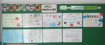代表委員会の掲示板には、お店の紹介のポスターが貼ってありました。どれも楽しそうで、行ってみたくなるようなお店が並んでいます。