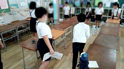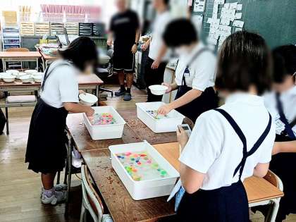 上の写真は3年1組の「ボーリング」で、下は4年1組の「スーパーボールすくい」です。