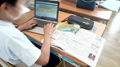 9/4 6年 社会科 公開日 2024/09/04 更新日 2024/09/04 お知らせ 6年生の社会は「武士による政治のはじまり」です。鎌倉幕府初代将軍の源頼朝が行った政治についてまとめていました。 グループに分かれて頼朝が行った取り組みを教科書やインターネットで調べてピラミッドチャートに書き出し、最終的に簡単な文章にまとめる作業をしていました。 子どもたちのタブレット操作はお手の物で、調べたことを次々と書き出して、頼朝の政治の特色を簡潔にまとめていました。 いいね(0)