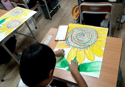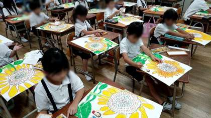 9/5 1年 図画工作科 公開日 2024/09/05 更新日 2024/09/05 お知らせ 1年生の図工は、クレパスを使ってヒマワリの絵を描いていました。 みんな、画用紙いっぱいに大きなヒマワリを描けており、とっても上手でした。 特に、暖色中心に描かれている大きなヒマワリの花はとっても華やかで、見ているだけで気持ちがほっこりします。 教室に飾られたときには、教室がパッと明るくなることでしょう! いいね(0)