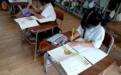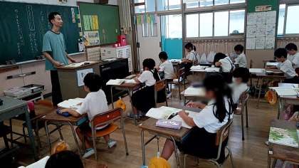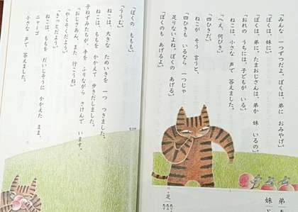 9/10 2年 国語科 公開日 2024/09/10 更新日 2024/09/10 お知らせ 2年生の国語は「ニャーゴ」です。この作品に馴染みがある方も多いのではないでしょうか? 無邪気な3匹の子ネズミたちと優しい猫のユーモアあふれるお話ですが、子どもたちも大好きです。 本時は、子ネズミたちが猫の子どもにおみやげの桃をプレゼントする場面で、その時のたま(猫)の気持ちを考えていました。 小学生の間は、このような心温まる絵本や物語をどんどん読んでほしいです。 いいね(0)