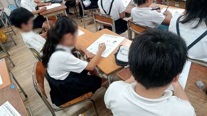昨日に引き続き、栄養指導のようすです。今回は3年生が「しっかりとろうカルシウム」というテーマで授業を行いました。