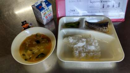 今日の献立は ・さごしの塩こうじ焼き ・みそ汁 ・えだまめ ・ごはん ・牛乳 です