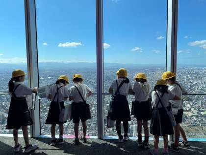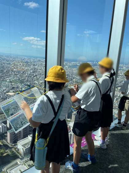 9/26 3年社会見学(あべのハルカス その2) 公開日 2024/09/26 更新日 2024/09/26 お知らせ 3年生の社会見学の様子です。ハルカス展望台から大阪の町の様子を見ています。 東西南北それぞれの方向から見えるものをチェックし、ワークシートに記入しています。 お天気がいいので、通天閣や大阪城、京セラドーム大阪などはもちろん、淡路島まで見えたかもしれませんね。 いいね(0)