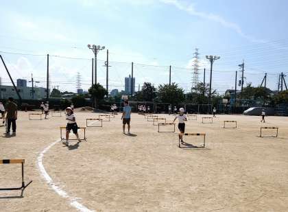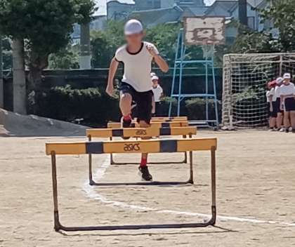 5年生のみなさんは、ハードルを「跳ぶ」のではなく、「またぐ」というイメージで走るといいですね。
