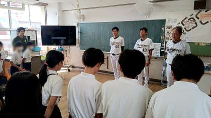 今回は、「オリックス・バファローズ」の元選手で、現在は球団職員である3名の方が講師として来校し、主に夢や目標についてお話していただきました。