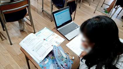 4年生の算数は、「面積」です。長方形を組み合わせた図形の面積の求め方を考えていました。