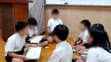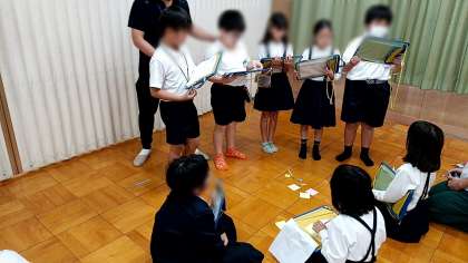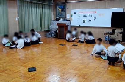 3年生の総合的な学習は、「わたしたちのまち 苅田南探検隊」です。本時は多目的室を使って、近日中に行う大依羅神社の宮司さんへのインタビューの練習をしていました。