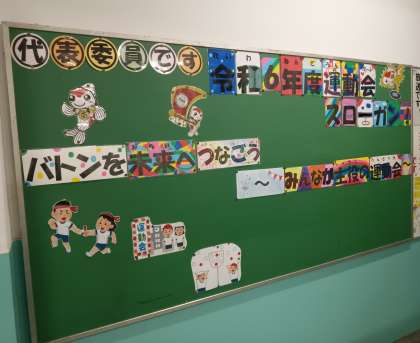 代表委員会の掲示板に、今年の運動会のスローガンが飾られました。