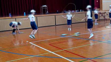5年生の体育は、体育館と運動場に分かれて行っていました。