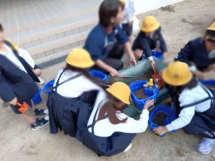 11/8 1年 生活科 公開日 2024/11/08 更新日 2024/11/08 お知らせ 1年生は、生活科の時間に、チューリップの球根を植えました。 管理作業員さんのお手伝いのもと、子どもたちは、植木鉢に土を入れ、植える深さや球根の向きに気を付けながら手で優しく植えていました。 綺麗な花が咲く春が、待ち遠しいですね。 いいね(0)