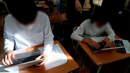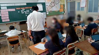 この日の課題は「自分たちは、これからよりよく生きていくためにどうすればいいだろうか」。「どんな仕事につけばいいのか」「少子高齢化の対策は?」など、地域や日本の課題を踏まえながら自分のこれからの生き方を探すために、まずは、動画やインターネットを使って情報を集め、その情報を整理分析し、最終的にまとめるという一連の作業を行いました。