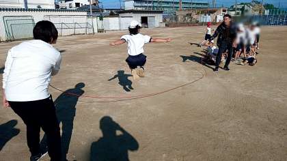 11/11 2年 体育科 公開日 2024/11/11 更新日 2024/11/11 お知らせ 2年生は午後から体育の学習で、大なわと短なわを使ったなわとび運動です。 短なわは自分の跳びやすい跳び方を練習していました。一方、大なわは「八の字跳び」をを練習していて、先生が回すなわの間を子どもたちは何回も跳んだりくぐったりして楽しんでいました。 いいね(0)