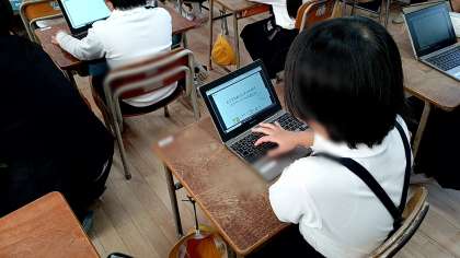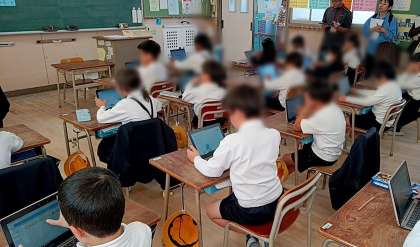 子どもたちは、前時までに、主にあびんこ商店街にあるお店の中で自分の興味があるお店を選びました。本時は、そのお店について個々で調べたいことを考えて、タブレットの発表ノートに打ち込んでいました。さらに、その意見を思考ツールのYチャートで「調べてわかること」「質問してわかること」「(お店に)行って(実際に)見てわかること」の3つに分類しました。