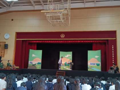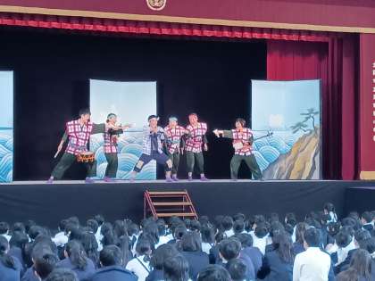 今日の3・4校時に「芸術鑑賞会」を行いました。今年度の芸術鑑賞は、6月のダンスに続き2回目となり、今回は演劇で、劇団コーロさんによる「天満のとらやん」を鑑賞しました。