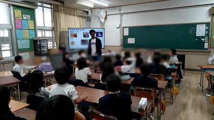 11/14 3年 外国語活動 公開日 2024/11/14 更新日 2024/11/14 お知らせ 3年生は、劇鑑賞(芸術鑑賞会)の後は、外国語活動です。色や形の言い方を中心に学習しました。 子どもたちは、先生の問いにテンポよく答え、楽しそうに学習する姿は、見てる方も楽しくなります。その後は学習した言葉をワークシートに書いて練習しました。 3年生のみなさんは、今のうちからどんどん英語に親しんで、英語が好きになってほしいです。 いいね(0)
