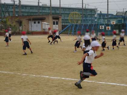 今年は「校内オリエンテーリング」ということで、教室だけでなく、子どもたちの体力の向上という目的で、運動場を使って行いました。