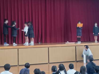 11/20 児童集会 公開日 2024/11/20 更新日 2024/11/20 お知らせ 今日は水曜日ですが、「児童集会」を講堂で行いました。 今回のゲームは「かもつ列車」。いわゆる「ジャンケン列車」で、じゃんけんで負けた人は勝った人に繋がっていくゲームです。 子どもたちは、わいわいと盛り上がりながらだんだんと列が長くなっていきました。そして、最後は、200人以上いる子どもたちの中で頂点に立った4名が、みんなの前で大きな拍手を浴びました。 いいね(0)