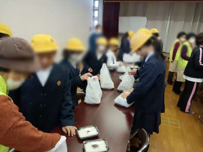 5年生は、総合的な学習の一環として、地域の配食サービスのお手伝いをしています。