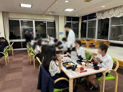 6年生は、夕方に宿舎に到着し、避難訓練を経て夕食、この日の学習の振り返り、入浴と予定通りにスケジュールをこなしていきました。