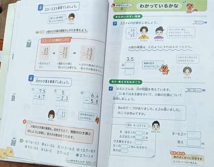 3年生の算数は「小数のたし算とひき算」です。小数第一位までのひき算の筆算の仕方について考えていました。