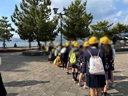 宮島水族館で見学を終えた子どもたちは、お土産タイムを経て、昼食をとりました。