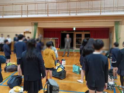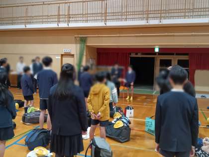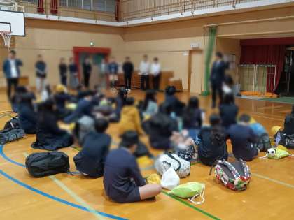 6年生が、夕方6時前に修学旅行から無事帰校しました。講堂で帰校式を行った後、子どもたちは解散し、帰路に就きました。