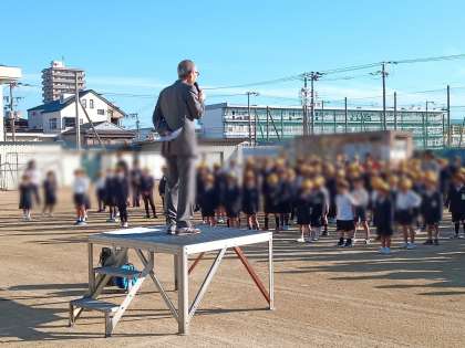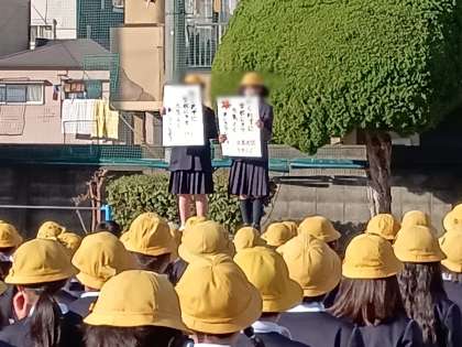 校長先生からは、先週末の修学旅行(6年)の報告があり、看護当番の先生からは、3つの約束(あいさつ、横断歩道、整理整頓)についてのお話がありました。整理整頓については、学期末が近づいていることもあり、子どもたちには特に意識してほしいです。