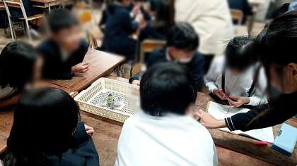 写真上は3年理科「電気で明かりをつけよう」、写真下は4年理科「果物で電池を作ろう」です。