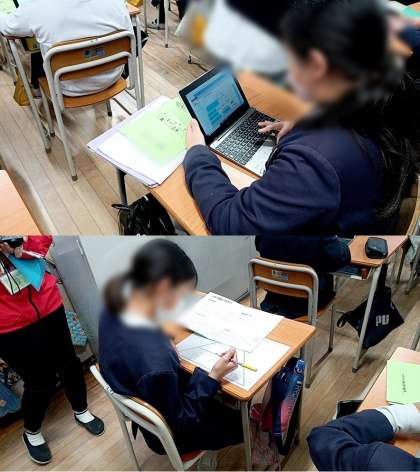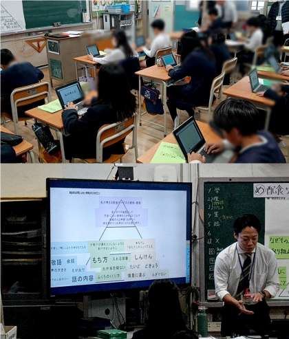 自分の考えをタブレットに打ち込む子もいれば、紙のワークシートに書き込む子もいて、自分に合った方法でまとめていきました。途中、発表ノートのライブ機能を使って友だちの意見を参考にしながら自分の考えをまとめていくなど、それぞれが工夫しながら最終的に自分の考えをしっかりともつことができました。