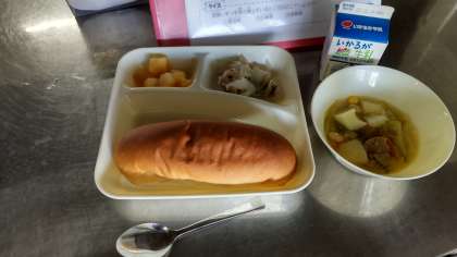 1/10 今日の給食 公開日 2025/01/10 更新日 2025/01/10 お知らせ 今日の献立は ・あじのレモンマリネ ・てぼ豆のスープ煮 ・白桃(カット缶) ・パン ・牛乳 です いいね(0)