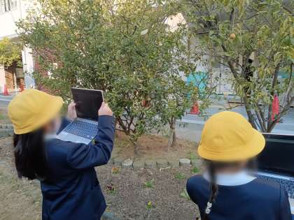 1/14 2年 生活科 公開日 2025/01/14 更新日 2025/01/14 お知らせ 2年生は生活科の学習で、冬の自然の様子を観察していました。 子どもたちは、中庭にある金柑やレモンの木などを、タブレットで写真を撮っていました。 写真で撮った冬の自然の様子は、後にかるたにして、みんなで遊ぶそうです。 いいね(0)