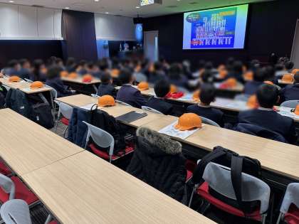 まず最初は、新聞社の仕事や新聞印刷の仕組みについての説明を聞きました。この後は、新聞印刷の現場をリアルタイムで見学します。