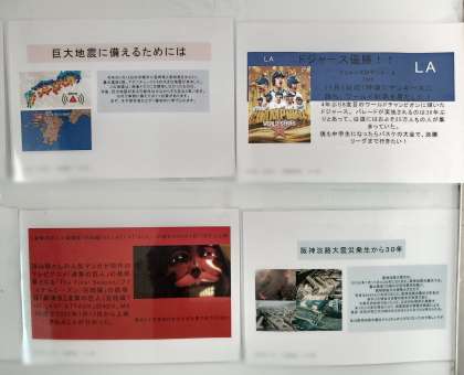 先日の委員会活動時に、個々で新年のニュースについてまとめています。内容をよく見ると、大谷選手(プロ野球)の話題はもちろん、阪神淡路大震災や今年注目の関西万博などさまざま。少し驚いたのは、箱根駅伝の話題があったことです。関東の大学生中心の大会ですが、ここ関西でも注目になったようですね。