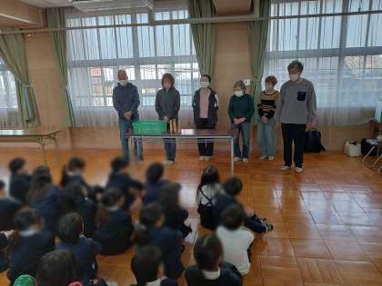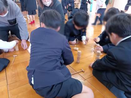 1/21 1年 生活科 公開日 2025/01/21 更新日 2025/01/21 お知らせ 1年生は2時間目に昔遊びをしました。地域の6名の皆さんが来校され、多目的室で4つのグループに分かれてけん玉やだるま落とし、コマ、お手玉などの遊びで楽しみました。 子どもたちは、地域の方に遊び方を教わりながら、それぞれの遊びに夢中で取り組んでいました。 地域のみなさんと1年生は、来週のこの時間にも昔遊びを通して交流する予定です。 いいね(0)