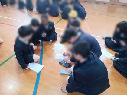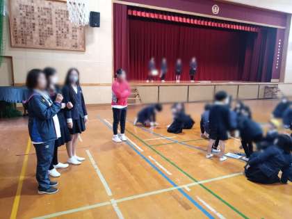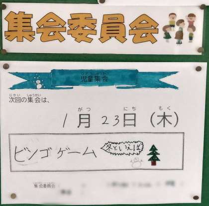 3学期最初の児童集会は「ビンゴゲーム」です。「冬と言えば」というテーマで、なかよし班のペア学年(2〜3人一組)で行いました。