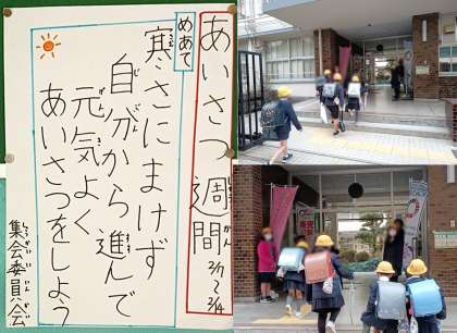 まだまだ寒い日が続きますが、一日の始まりは元気にあいさつをして、心も体も温まりましょう。