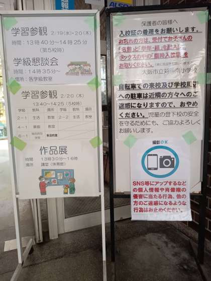 時間は、13時40分(第5校時)からとなっていますので、再度、ご確認をお願いします。なお、6年生の参観は、西館2階の多目的室で行いますのでご注意ください。
