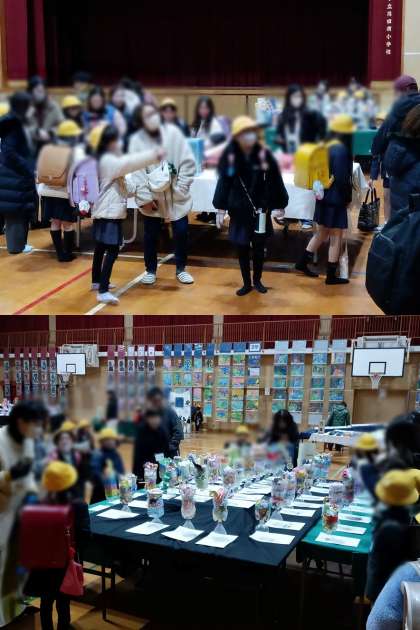 (写真は上から、2−1⇒2−2⇒4−1⇒6ー1⇒作品展のようす(2枚)です)