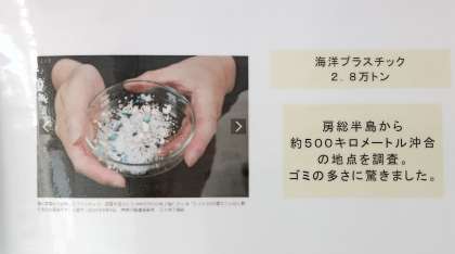 10月3日の朝日新聞(WEB)の記事(有料)で、「房総半島の沖合では、年間2万8千トンものマイクロプラスチック(大きさ5ミリ以下)が深海に沈んでいる」というニュースがありました。これは、研究チームが2年間かけて行った観測でこのような実態が明らかになったそうです。また、プラスチックは環境中に出ても分解されないため、海洋プラスチックの約9割は行方不明といわれています。