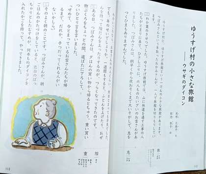 3年生の国語は「ゆうすげ村の小さな旅館」です。このお話は、旅館の女将つぼみさんが、ウサギの美月と出会い、彼女の助けで旅館の仕事を乗り越える物語です。本時は、美月がウサギであることを表している部分を本文から探し、タブレットの発表ノートにまとめていました。