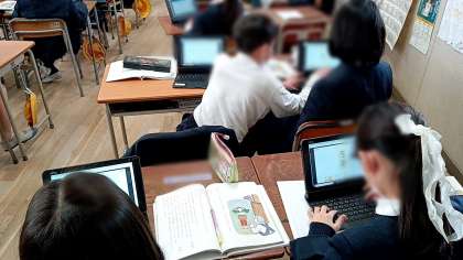 先生の説明の後、黙々とタブレットに文字を打ち込んでいましたが、途中、操作で困っている子がいると周りの友だちが優しく教えてくれていました。