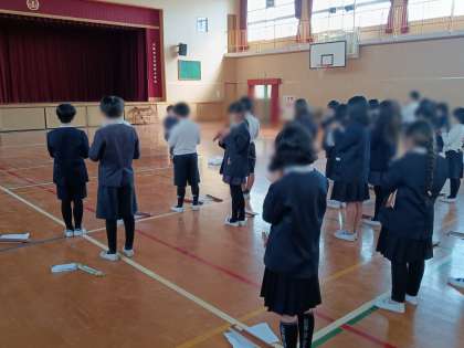 2/27 4年 特別活動 公開日 2025/02/27 更新日 2025/02/27 お知らせ 4年生は講堂で、一週間後の木曜日(6日)に行われる「卒業おめでとう集会」の練習をしていました。 4年生は、6年生にお祝いのメッセージとリコーダ—の演奏をプレゼントをするそうです。他の学年も現在、おめでとう集会に向けて練習中です。 集会当日は、どの学年がどんなことをして盛り上げてくれるのか、今から楽しみです! いいね(0)