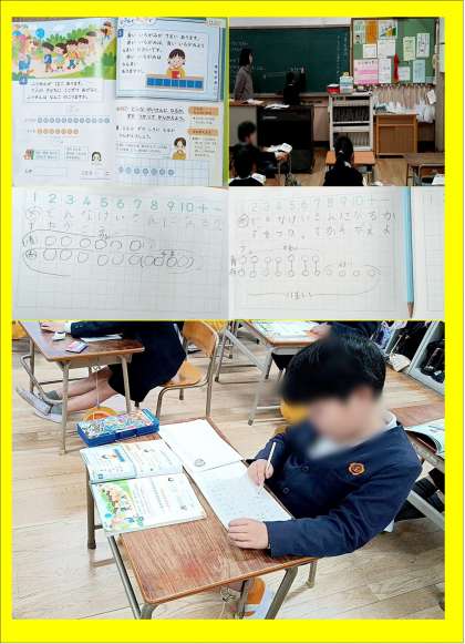 1年生の算数は、「ずを つかって 考えよう」です。本時では、二種類の色紙の数を求める問題を図を使いながら答えを求めていました。