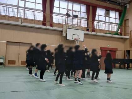2年生は、明後日木曜日に講堂で開かれる「卒業おめでとう集会」の練習です。