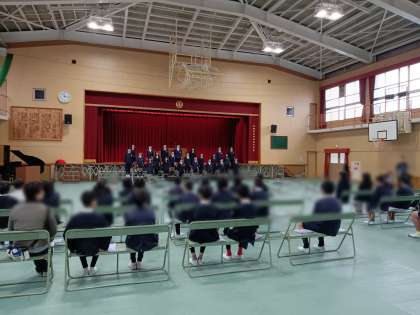 3/4 5・6年 卒業式に向けて 公開日 2025/03/04 更新日 2025/03/04 お知らせ 5・6年生は、今週から卒業式に向けて合同練習を始めました。今回は、主に「お別れのことば」を歌も含めて通しで行いました。 両学年共にいい緊張感で練習をしており、特に6年生は、ひな壇に立っている時の姿勢と表情がとても凛々しく、5年生は、きれいな歌声と座っているときの姿勢がとても良かったです。 これから、練習を重ねていくうちに、練習の精度をもっともっと高めてくれてくれることでしょう! いいね(0)