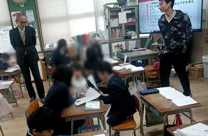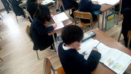 子どもたちは、「ありがとう」「楽しみ」など、がまくんの感謝や期待感などの気持ちをワークシートにかかれた大きな吹き出しの中に書き入れました。
