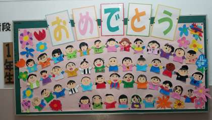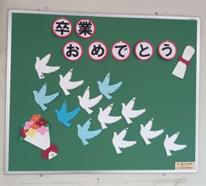 校内の掲示板には、卒業をお祝いする掲示物へと模様替えしています。